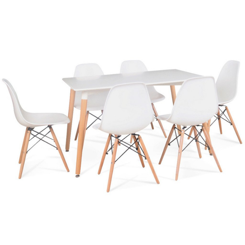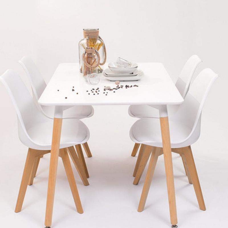 Mesa eames rectangular de madera laqueada mdf con patas de madera. descripción: • Modelo: eames.. • Color de la mesa: blanco mate. • Material: madera mdf + patas de madera.
