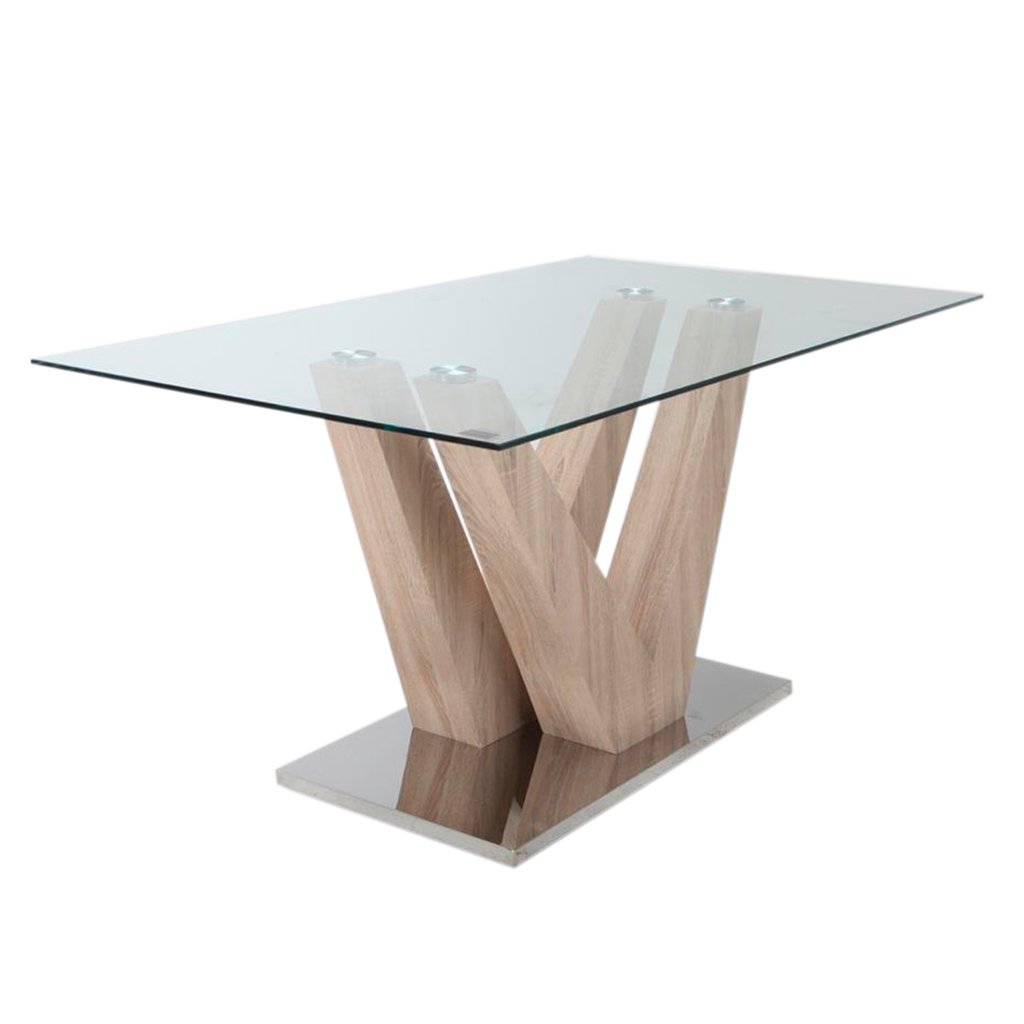 Mesa Victory natural 160×90 + 6 sillas toronto Blanca eco cuero