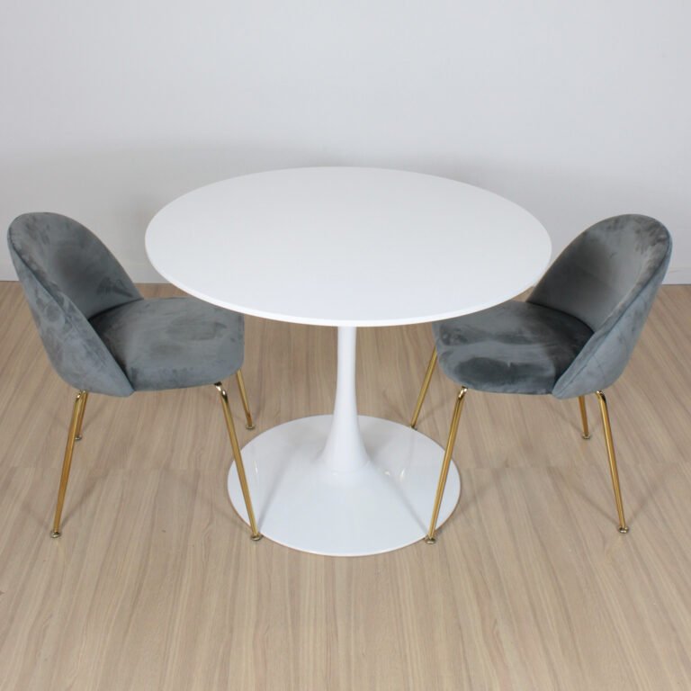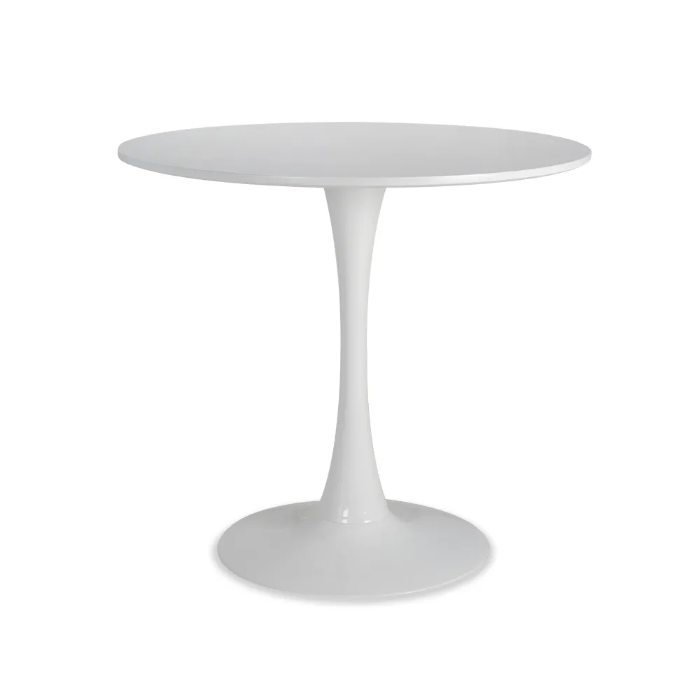 - Mesa Tulip redonda de diseño hecha en tapa de madera (MDF) laqueada, estructura metålica.