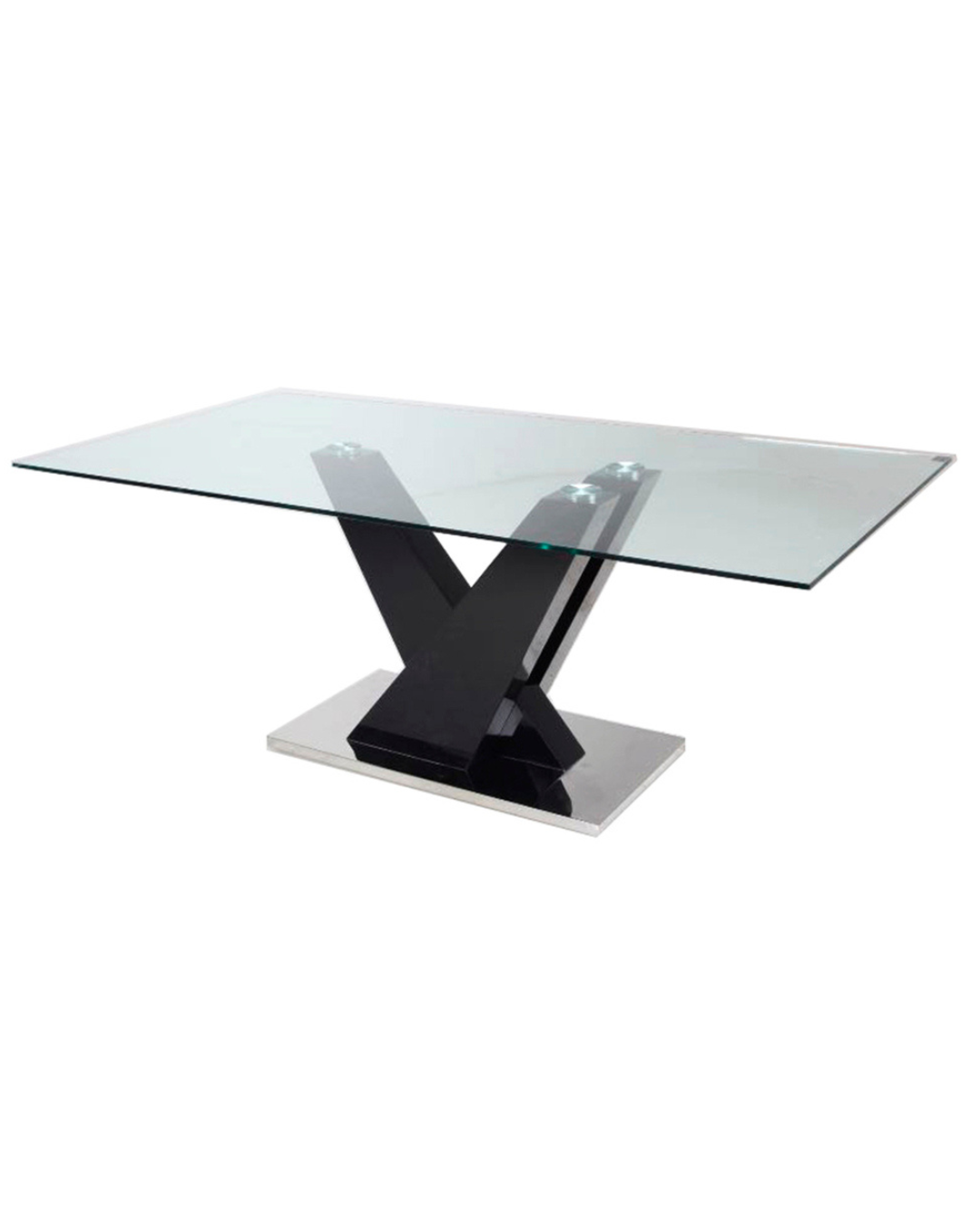 Transformá tu comedor con la Mesa Vanna Negra, una pieza de diseño moderno y sofisticado. Su base central en forma de “X” está construida en madera laqueada color negro brillante, con elegantes detalles cromados, y una tapa de vidrio templado que aporta amplitud y estilo al ambiente.
