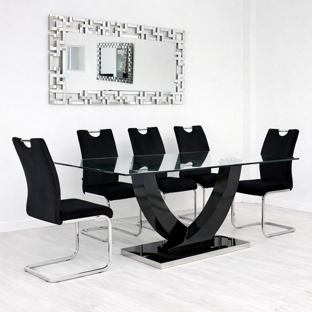 Mesa Zafiro 180*90+ 6 sillas Beccza pana negro