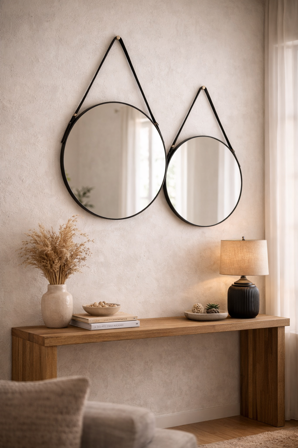Set de Espejos Redondos Colgantes con Correa – 80 cm y 60 cm