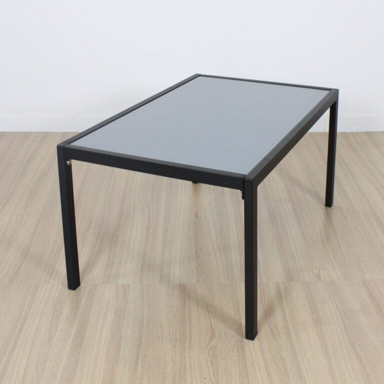 La mesa es de hierro y vidrio templado de 5 mm de espesor.