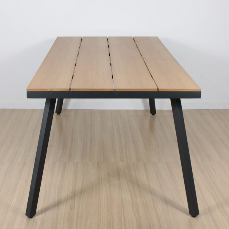 La mesa Esta hecho de hierro, con madera plástica de 13 mm.