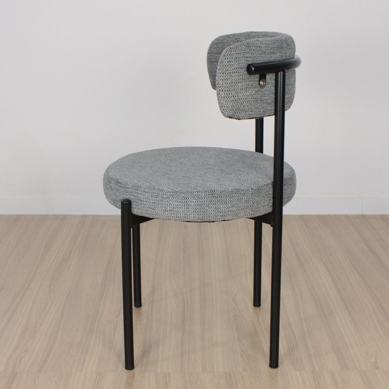 Silla de estructura metálica patas de acero con recubrimiento de polvo negro, asiento tapizado en tela chenille. Super resistentes. . Articulo importado, de excelente calidad