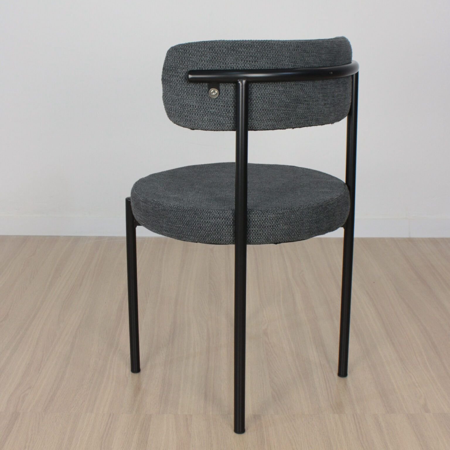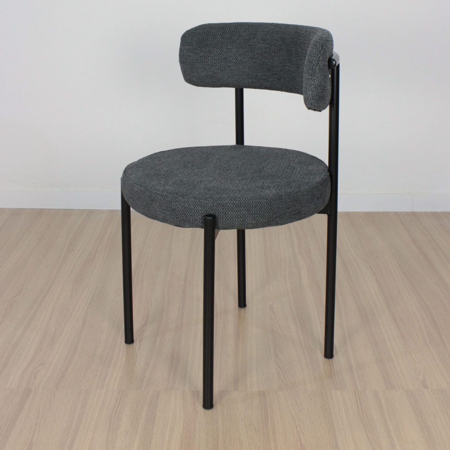 Silla de estructura metálica patas de acero con recubrimiento de polvo negro, asiento tapizado en tela chenille. Super resistentes. . Articulo importado, de excelente calidad