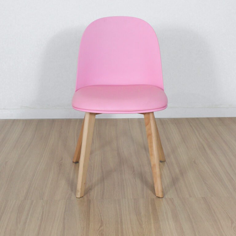 - Silla de asiento de polipropileno con almohadón acolchado de ecocuero y patas de madera haya, felpas antideslizantes .
