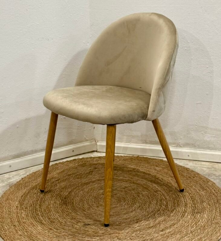 Silla de estructura de metal color madera, asiento tapizado en pana antimancha. Medidas 48x44x78 cm. al asiento 45 cm. Super resistentes. sencilla de armar. incluye lo necesario para hacerlo. Articulo importado.