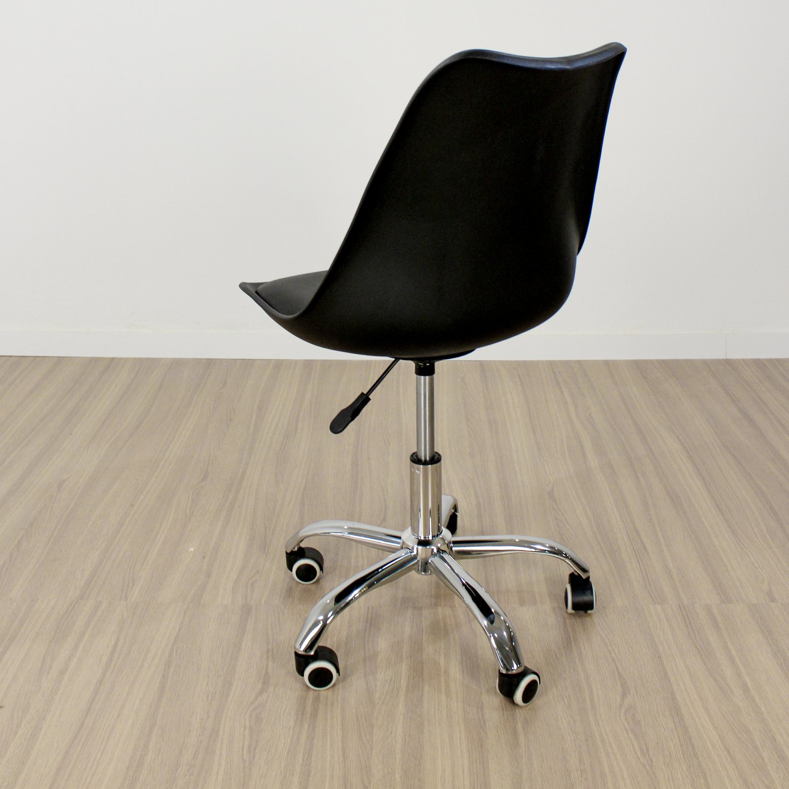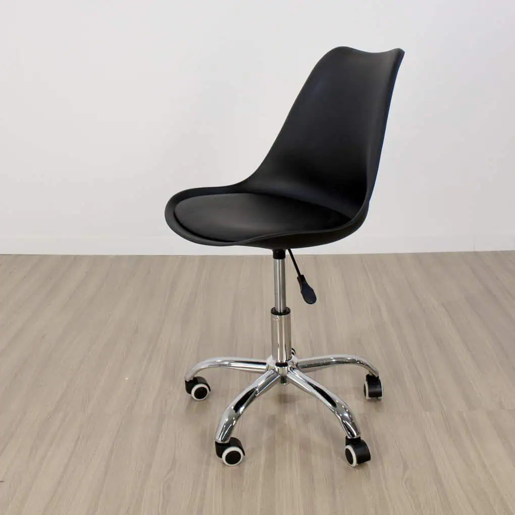 Silla Giratoria de base cromada con ruedas de asiento de Polipropileno y almohadĂłn de ecocuero de altura regulable