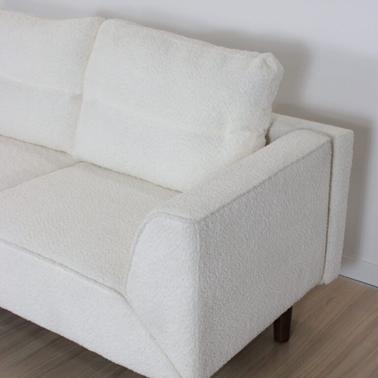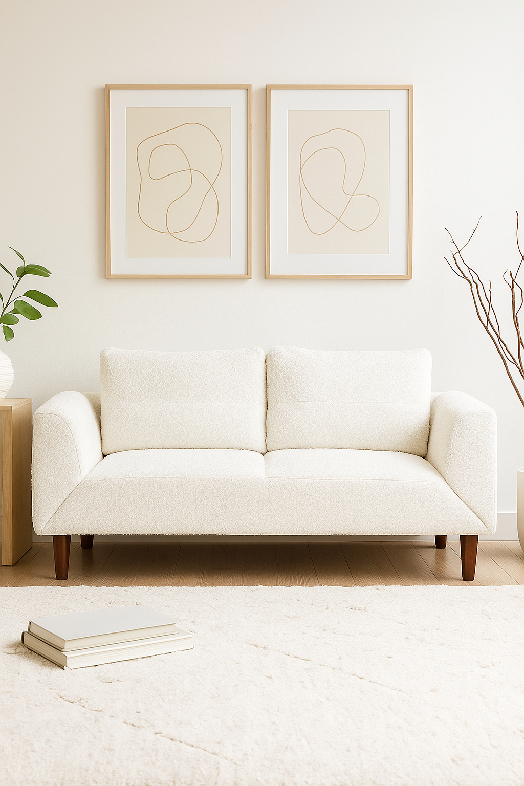 El Sofá Cama Suiza combina diseño europeo con comodidad absoluta. Tapizado en bouclé premium, suave y moderno, y acompañado de patas de madera maciza, aporta calidez y estilo a cualquier ambiente.